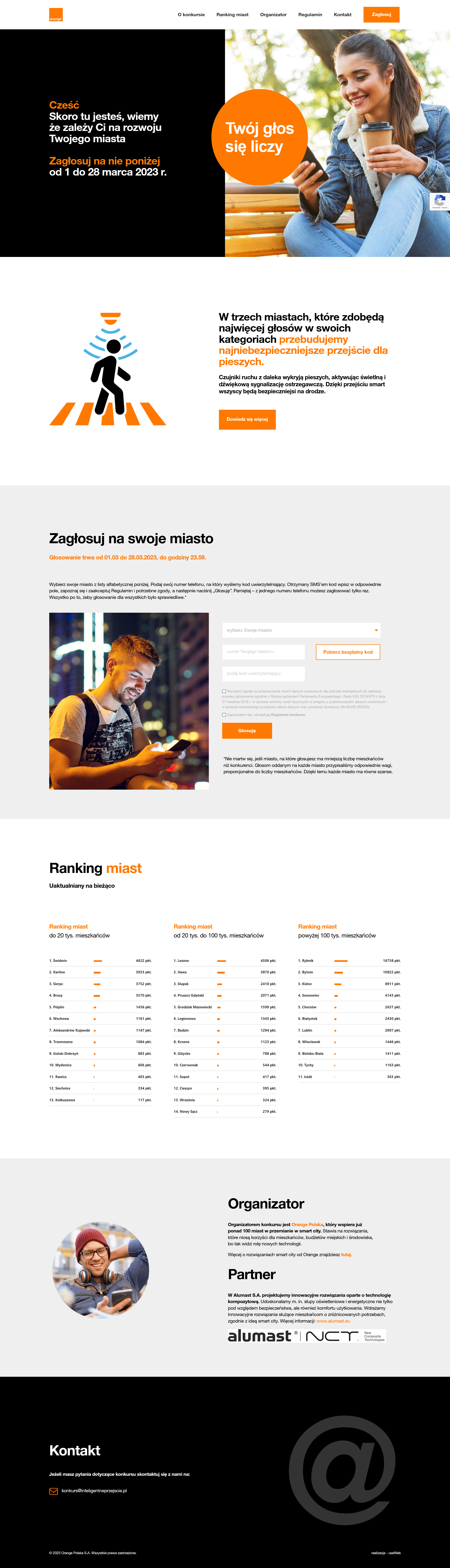For the company Orange, we had the honor of developing a comprehensive project, which included a website and a voting module. Our goal was to enable residents to cast their vote for the smart pedestrian crossing project in their city. To ensure the safety and credibility of the voting process, we used the Orange SMS gateway and implemented additional security measures.